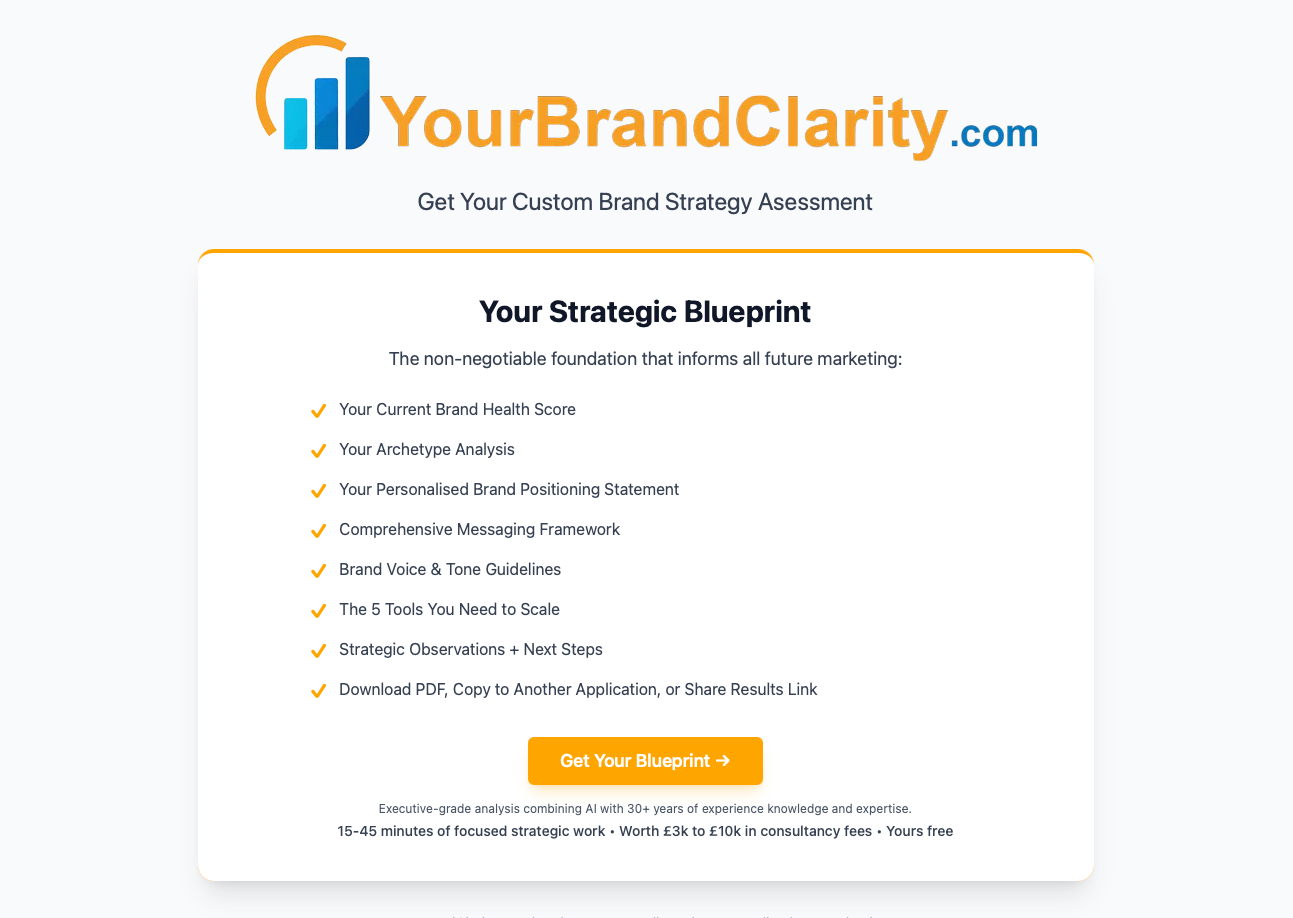 An AI-powered Brand Strategy Assessment that diagnoses your positioning in minutes (not weeks).